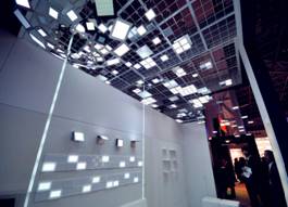 第三,意象傳達:美是一種客觀的價值,可以帶給人們愉悅的感受。美感的向往是人的本性,而美感的創(chuàng)造需智慧。在復(fù)雜的自然與人造環(huán)境組織中,富藏有力的結(jié)構(gòu)、韻律、色彩與紋理,均可成為感人至深的美的呈現(xiàn)。室內(nèi)燈具亦常以其造型來自或投射的光影吸引注意,甚至成為視覺環(huán)境中的強勢元素。故燈光照明如同展覽設(shè)計的形與面,對空間的定義與美感的經(jīng)營有不可或缺的貢獻。